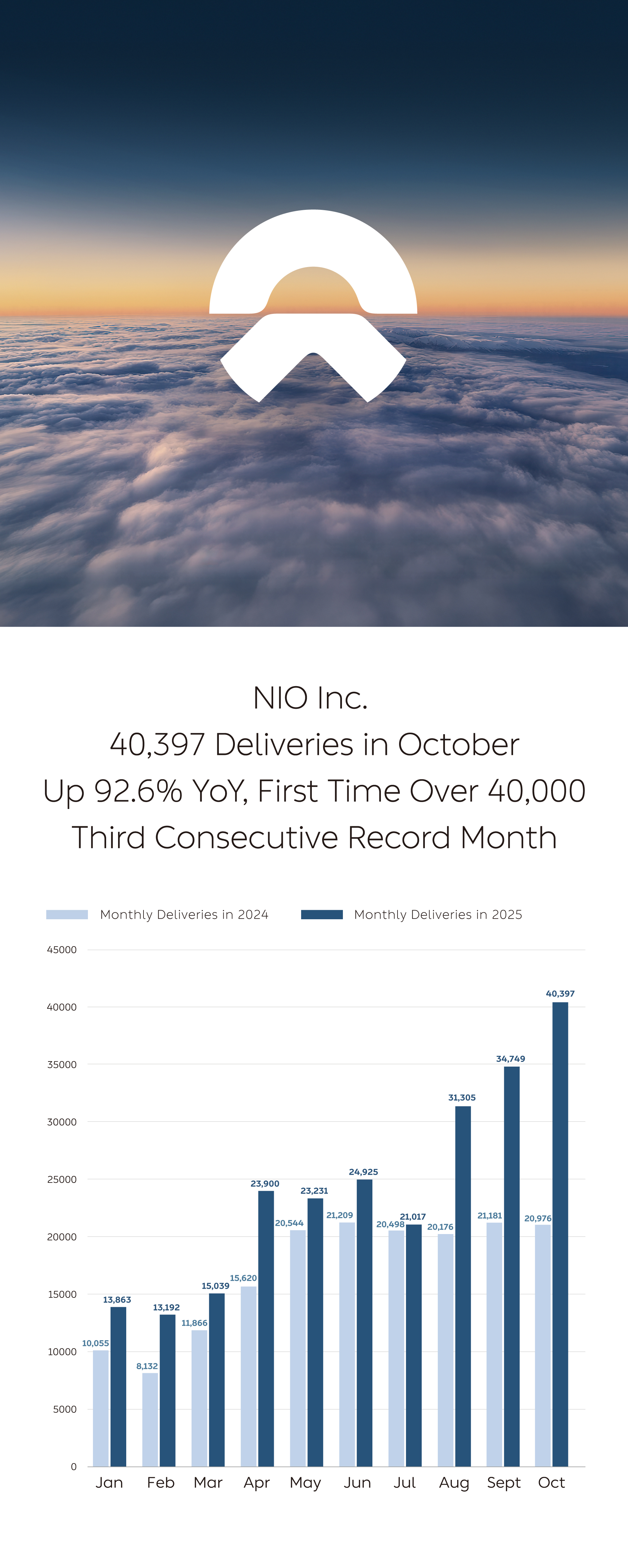 NIO Inc. Delivers a Record 40,397 Vehicles in October